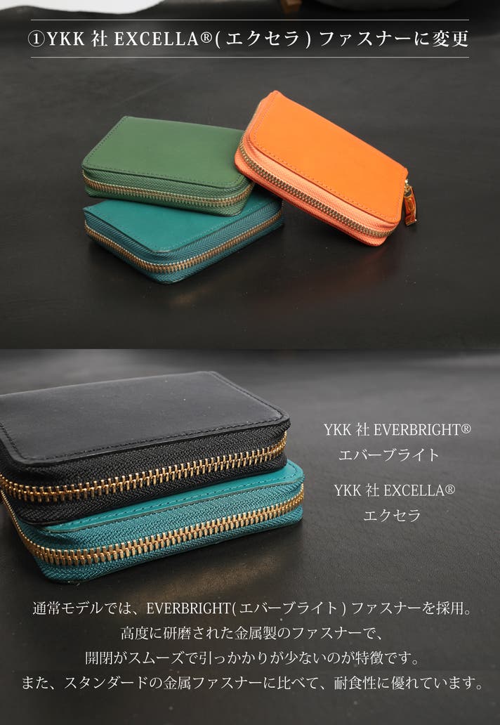 ⇒お財布のファスナーを【YKK社エクセラ】への変更の製作を承ります。