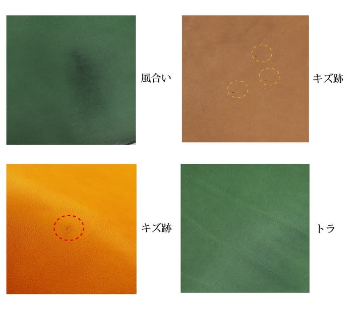 当工房ではキズ/各風合いを避けての裁断は極力しておりません。