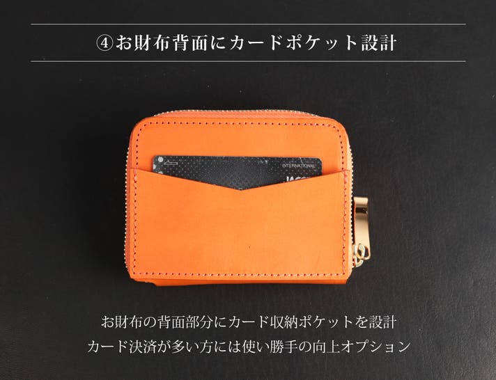 ⇒お財布背面部分に【カード収納ポケット仕様】への変更の製作を承ります。