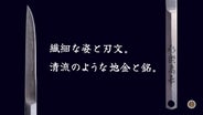 形状は優しい繊細な姿で、清流の様に地金が流れ、刃文も緩やかなのたれ刃を焼いています。光に透かすと刃文が浮かび上がります。