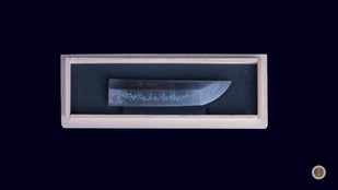 ※裁断した日本刀は制作の過程で一部問題が生じ製品に出来なかったものを利用しています。