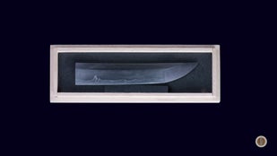 遠心という名称は「中心から切り離された」という意味で、刀身の手に持つ部分(ナカゴ)から遠く離れた切先を表しています。乱れ刃とのたれ刃の2つをご用意。桐箱を傾けてディスプレイすることも可能です。