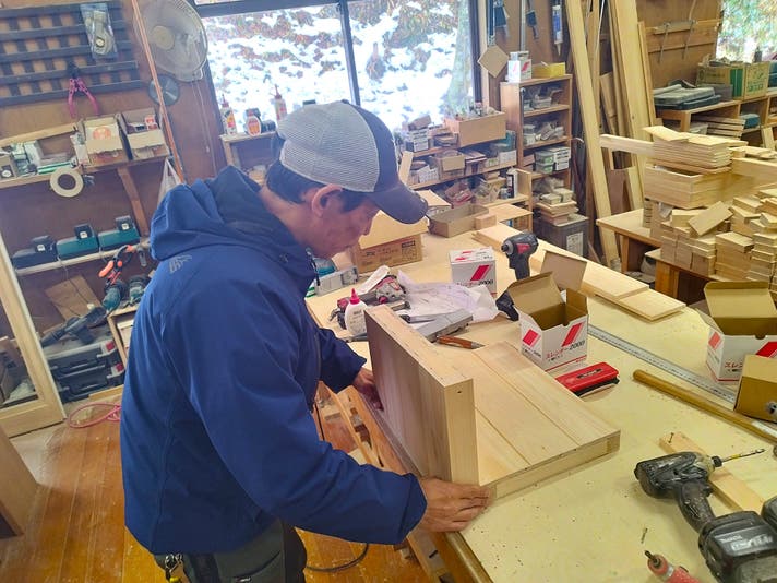 木材は、岐阜県産ヒノキ(国産)を使用。