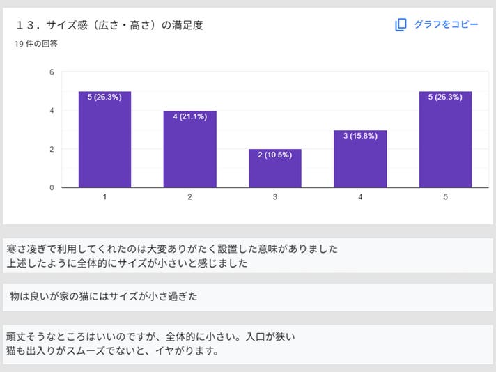 → 今回のプロジェクトは標準サイズ(平均的な成猫向け)のみを販売しています。ご意見を参考に、今後「特注サイズ」対応も検討予定です。