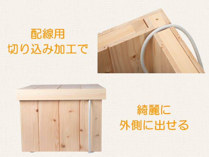 ヒーターは、過熱を防ぐ安全設計。防水仕様&噛みつき防止ケーブルで、屋外使用にも配慮しています。
