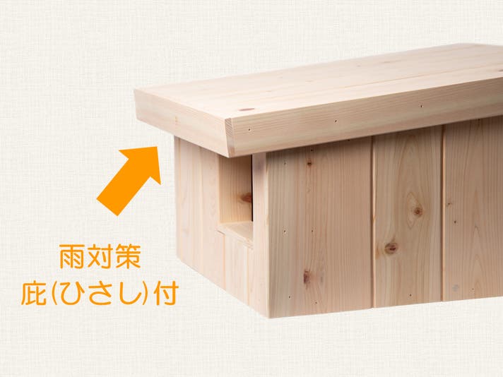屋根が出入り口より張り出した設計です。雨や風が入りにくい構造になっています。