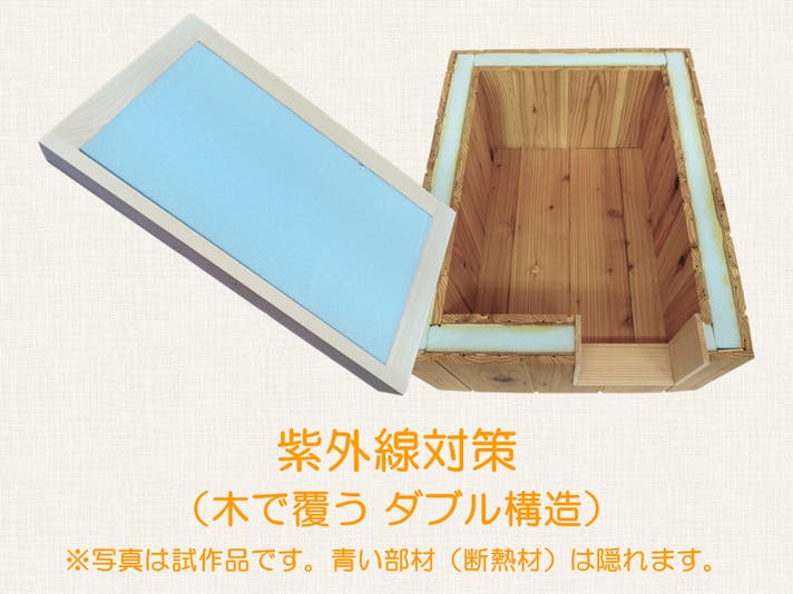 保温力を高めた“冬仕様”。断熱材+天然木、さらにヒーター付で快適性UP。地域猫活動におすすめです。