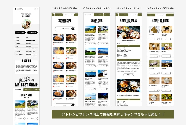 しかし、情報がありすぎて流れてしまうこともあり、キャンプに特化して自分の情報をストックできる機能や、情報共有・交流ができるサービスはこれまでありませんでした。ソトレシピのフォロワーさんからも「同じキャンプが趣味の人と交流できるサービスがほしい」という声も多く、より皆様がキャンプを快適に、何より楽しくなるWEBサービスを創りたく「ソトレシピFRIENDS」を開発するに至りました。