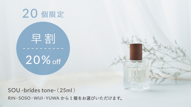 SOUの中で「brides tone」は花嫁様だけのために開発した香りですが、弊社はこれからも出会う人や空間に相応しい香りを創り上げたいと思っています。