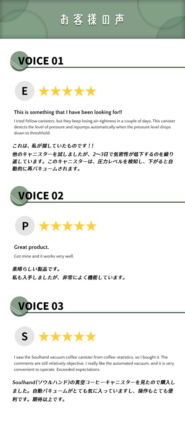 コーヒー豆をより長く新鮮に保つための解決策として、soulhandの真空コーヒーキャニスターになります。