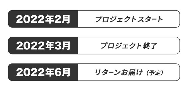 このプロジェクトはAll in型です。目標金額の達成に関わらず、プロジェクト終了日の2022年03月30日までに支払いを完了した時点で購入が成立します。