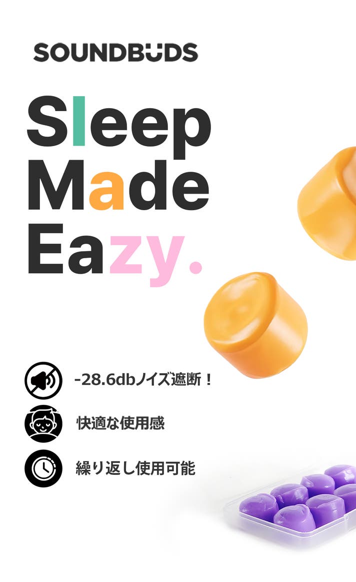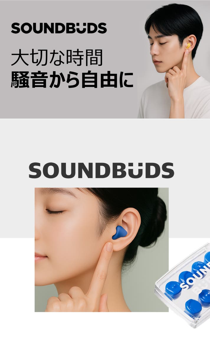 SoundBudsは、寝るとき、休憩中、勉強中、そして水泳の際など、さまざまなシーンでご使用いただけます。特に音に敏感な方に最適で音を和らげたい、集中したい、リラックスしたいときなど、日常のあらゆる場面で快適にお使いいただけます。
