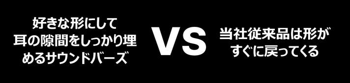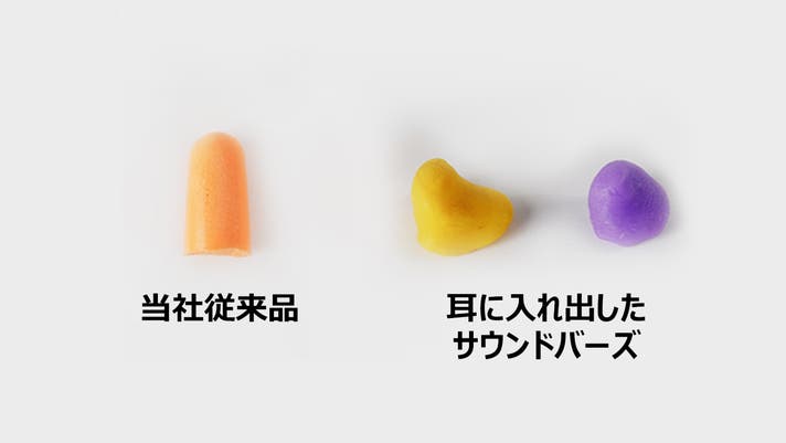 押すとすぐに元の形に戻ってしまうスポンジタイプの当社従来品とは異なり、SoundBudsはまるで粘土のように、指で軽く押したりこねたりするだけで自在に形を調整できます。