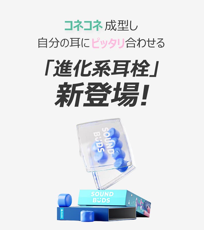 サウンドバーズはプレミアムシリコン素材を使用しています。しっかりとしたもちもちの弾力で、耳に心地よくフィットします。長時間使っても性能が落ちにくく、何度でも快適に使えます。