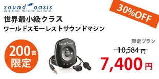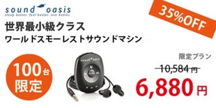 サウンド・オアシス「ワールドスモーレストサウンドマシン S-002」 とは、安眠と集中できる環境をつくるのに役立つ「ホワイトノイズ」や「各種セラピーサウンド」を手のひらサイズの本体に搭載した、持ち運び可能なサウンドセラピーマシンです。