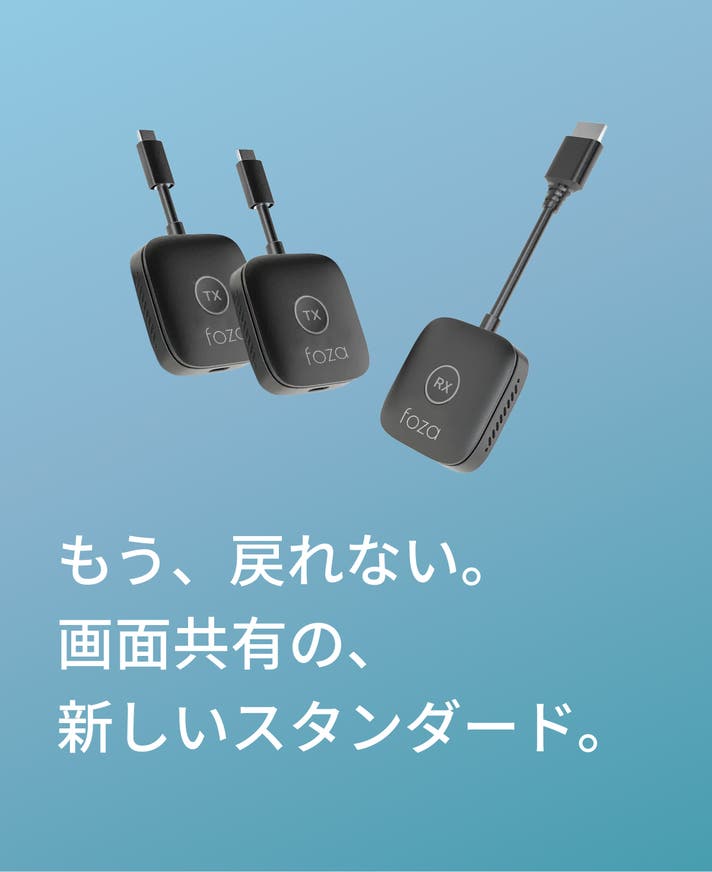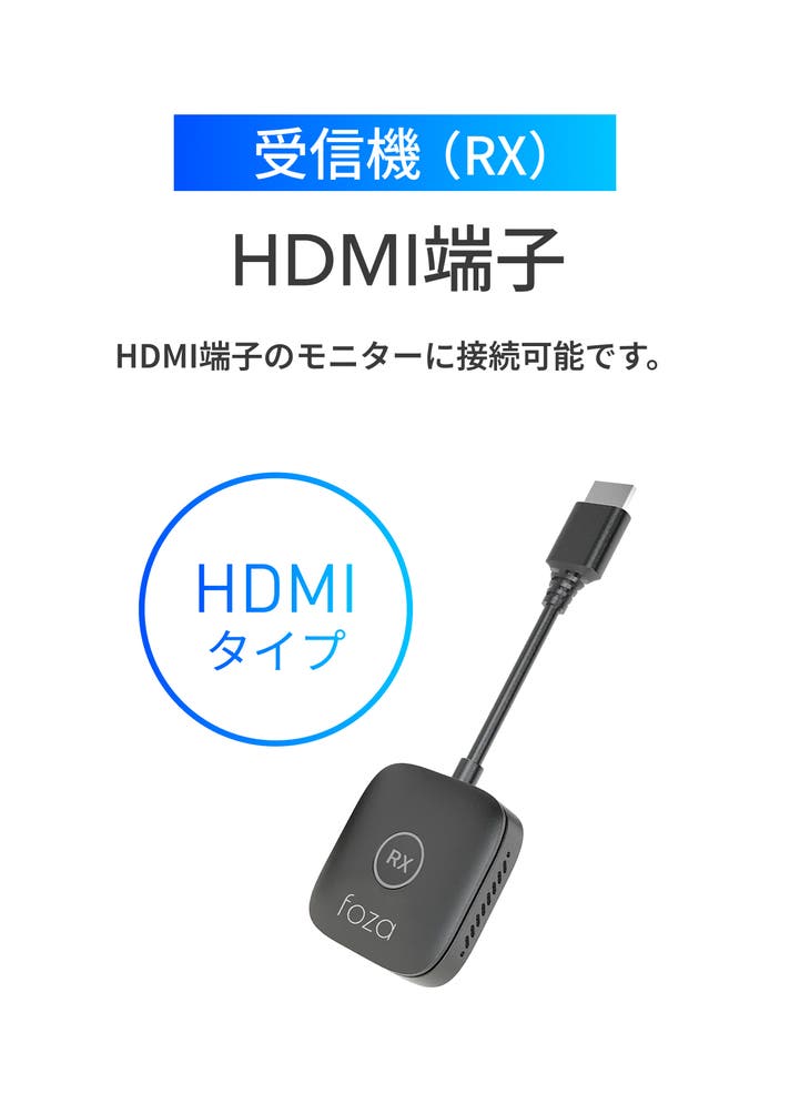 ※Foza Share TX〈送信機〉の端子はUSB-C、Foza Share RX〈受信機〉の端子はHDMIになります。
