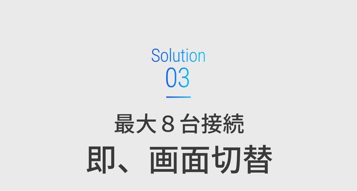 A5:最大8台同時切替できます。送信機を挿した複数端末からワンタッチで切替可能です。