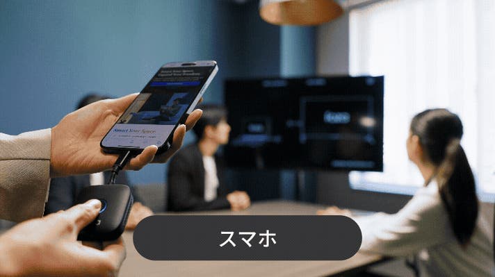 - 複雑な設定不要!差し込んで押すだけで、大画面のモニターに繋がる。