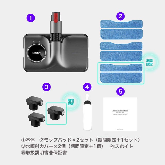交換用のモップパッドと水噴射カバーを期間限定で+1セット付属しています。