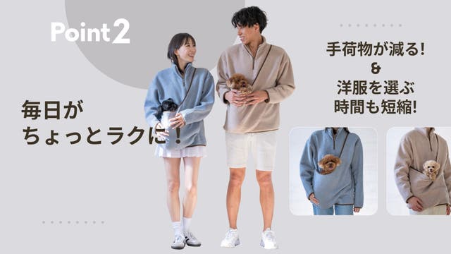 - そんなお悩みをお持ちの方へ!わんちゃんがポケットに入るお洋服で愛犬とのおでかけをもっと楽しく!