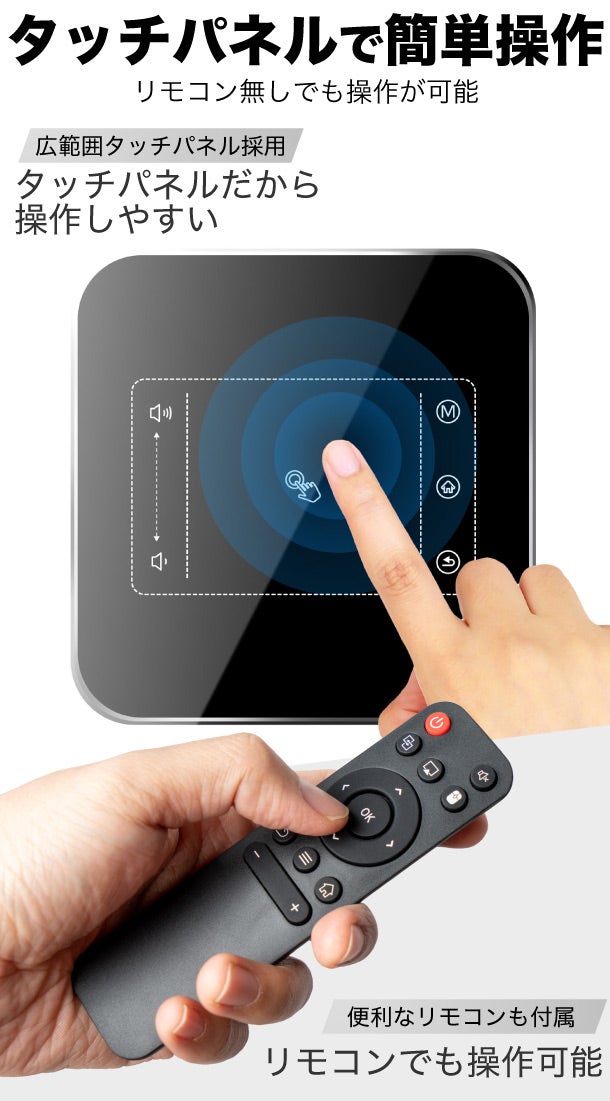 - Android搭載。タッチパネル、リモコン、スマホで簡単に操作できます