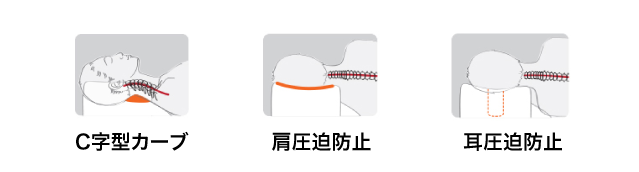 - 横向きで寝ても、仰向けで寝ても、首や肩に負担を与えない。