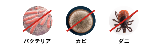 防ダニテスト95% ・ アレルギー染料テスト合格 ・ 記述標準院繊維合格