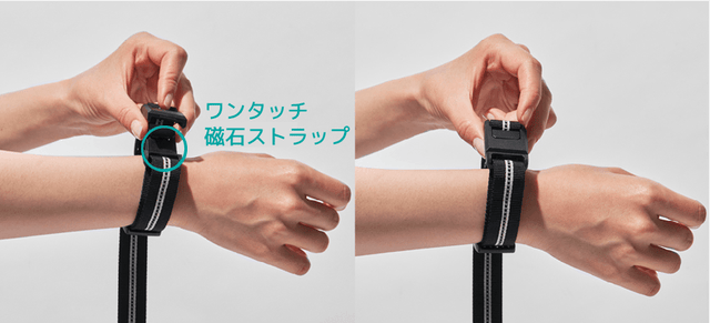 磁石ストラップを手首に繋いで愛犬が突然飛び出して起きる事件やおやつをや携帯など手を使う際に、リードを落として愛犬をなくすことを防止します。