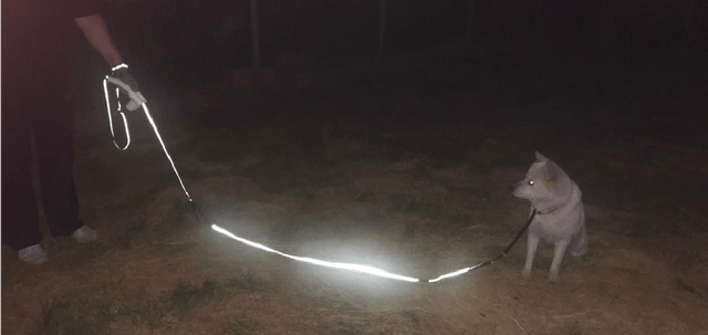 暗い状況でも光を探して反射するNETAのリードを通じて、視認性の良い楽な散歩ができます。