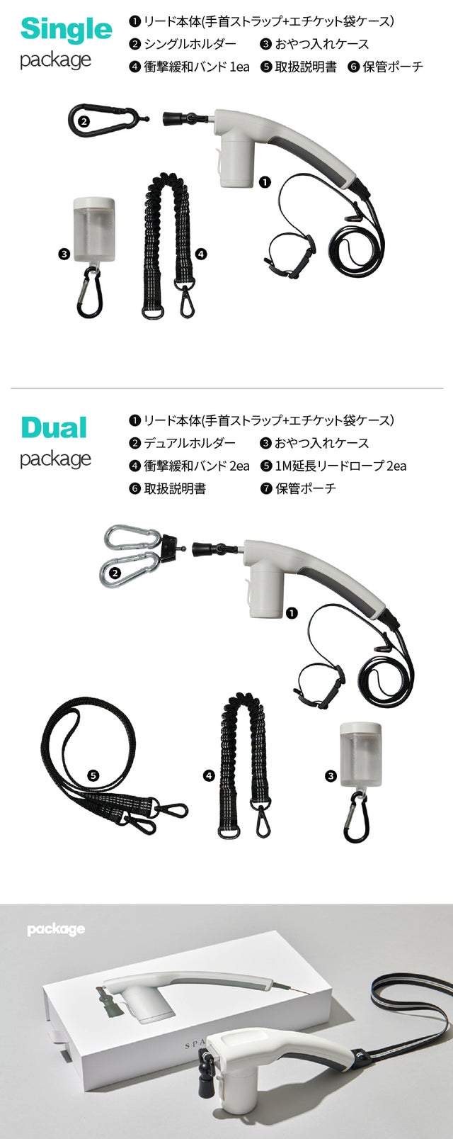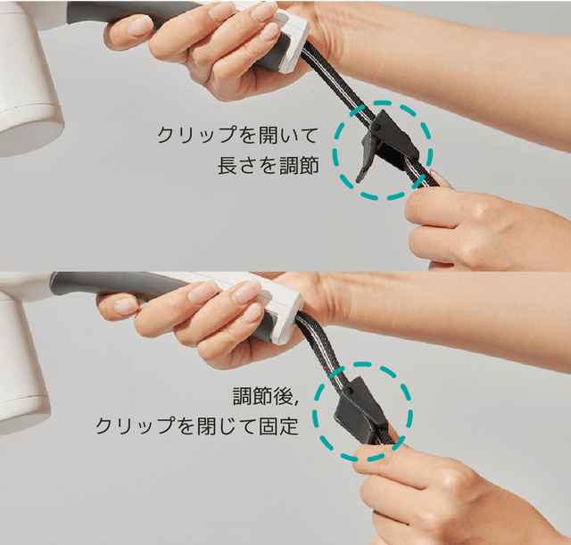 ➔シングルホルダーを使用する場合、片手で握ることをお勧めしますが、1M延長線を通して両手で散歩することもできます。