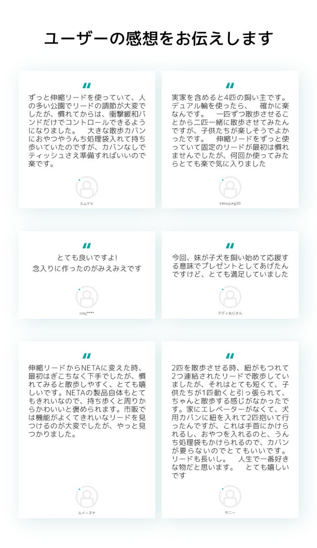 愛犬を愛する皆様のご散歩が、NETAを通してより幸せになることを願い、より良い製品開発のために多くの応援とご支持をお願いいたします。
