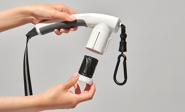 エチケット袋を持ち歩いて片手を使えず、散歩に不便を感じることはもうありません。 散歩を数え切れないほど経験したスペースドックでこだわった、飼い主のための配慮、エチケット袋の輪です!