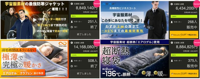 メーカーがこれまで販売を行ってきた「エアロゲルシリーズ」の累計販売総額が1.4億円を越え、毎年冬の大ヒット商品として多くの方から応援購入をいただいております。(*自社EC販売などを含む)