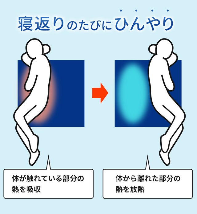 水分をたっぷり含んだジェルが、体と接する部分から熱を吸収して冷やし、体に触れていないところから熱を放熱してまたひんやり感が復活します。