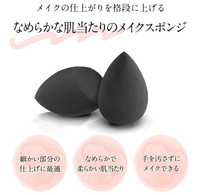 指でなじませるよりも、よりプロ級の仕上がりが目指せるスポンジです。なめらかな肌当たりのパフを採用し、細部や凹凸部分でもキレイにのばすことができます。手が汚れないので、朝の忙しい時にも大変便利です!