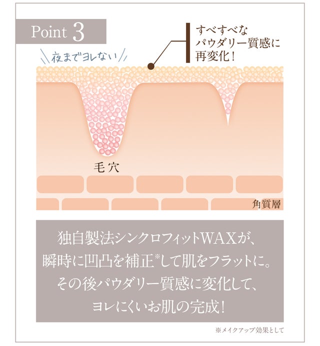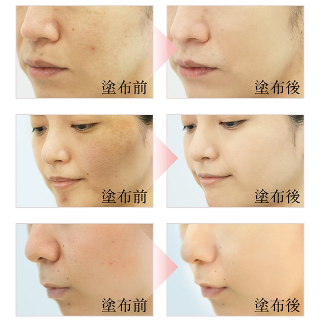 毛穴、シワの凹凸や色ムラなど、複合的な肌悩みのあるお肌でも、美しい肌を上から重ねたような素肌感のある自然な仕上がりです