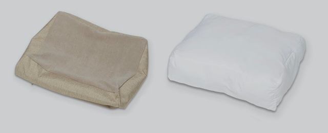 バッグの口を大きく開き、外側に折り返すとクッションベッドに早変わり!