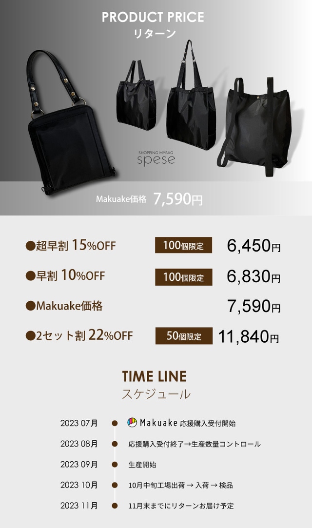 【Makuake価格】マイバッグ spese 1個