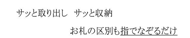 また、カードや小銭をほとんど入れないでご使用になる方は、【個別カードポケット】に1枚以上のカードを入れてご使用ください。(お札を挟む力を強くする為)