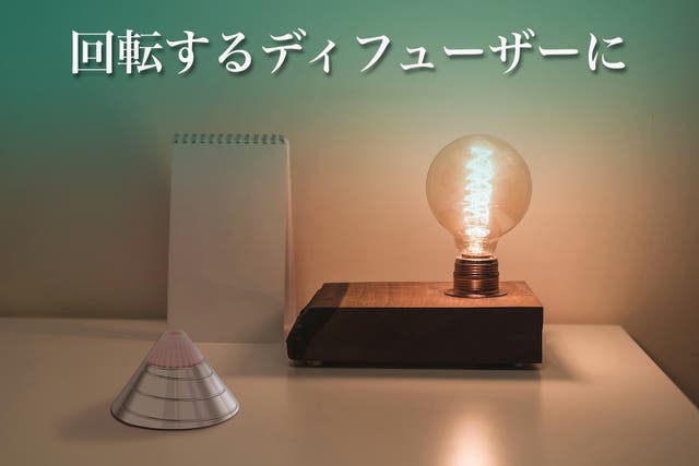 - 忙しい社会で生きる現代人に贈る、革新的なアロマディフューザー。回転&アロマの新発想