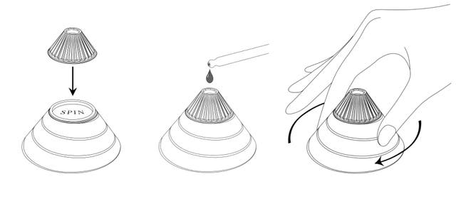 リフィルディスクを本体に乗せ、お好みのアロマオイルを数滴垂らして回します。