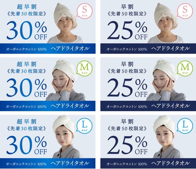 【早割】Mサイズ オーガニック コットン ヘアドライ タオル