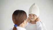 また、2か所にボタンを付けているので、髪の長さ、ボリューム、頭のサイズによって、調整することが可能です。
