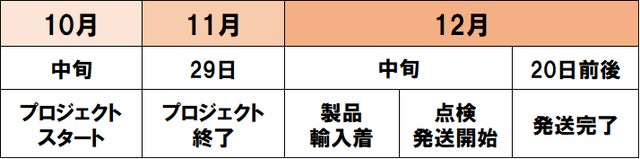 ※10月のプロジェクトスタート時点でのスケジュールとなります。変更事項が発生した時点でお知らせいたします。