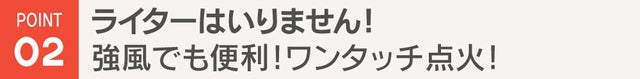 - ライターの必要無し!ワンタッチ点火・自動消火!マグネットでピタッとどこでもくっつく!
