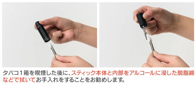 ・製品の特性上、タバコの灰がスティックの中にたまりニオイが出ることがありますので、使用後はすぐに灰を取っていただくことをお勧めします。