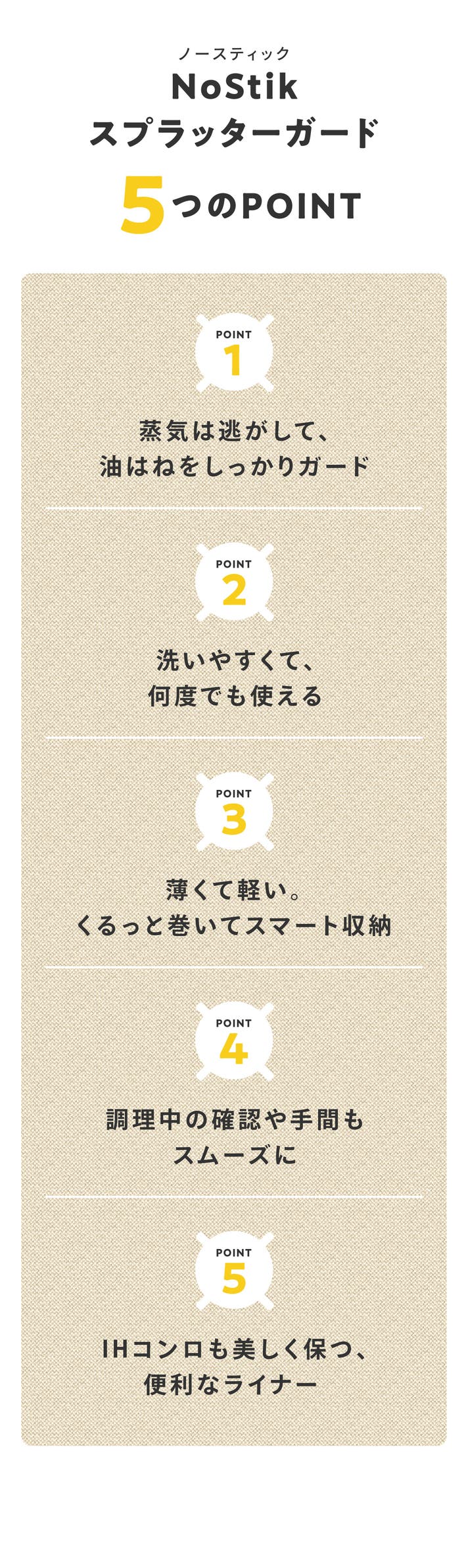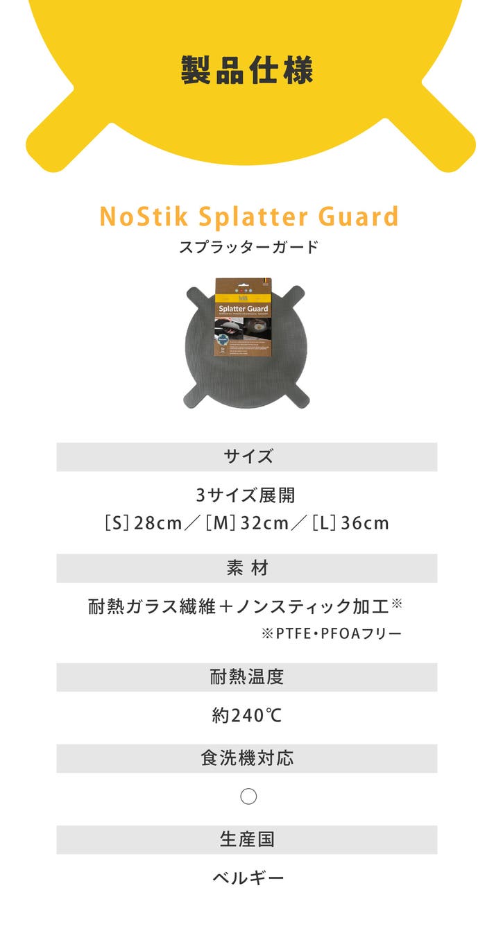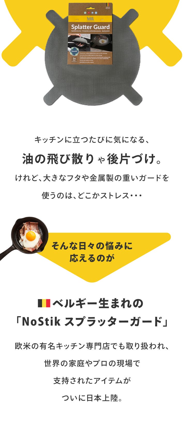 ベルギーのNoStik社が製造するこのスプラッターガードは、ヨーロッパ、アメリカ、オーストラリアなど世界中の家庭で愛用されており、品質と利便性の両面で高い評価を得ています。