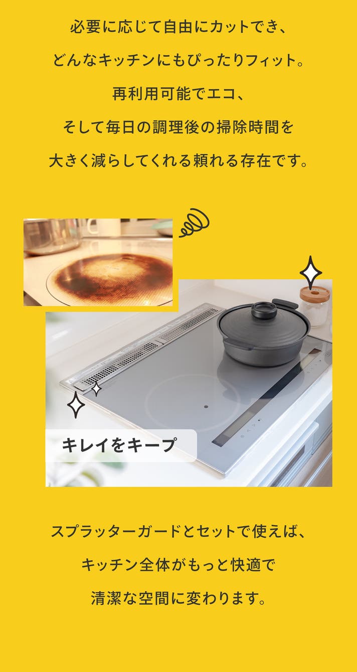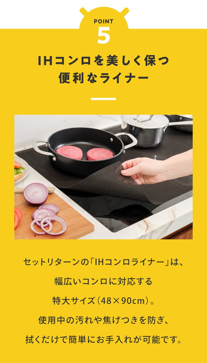 - IHコンロの傷や汚れも防ぐ「コンロライナー」もセットでご用意。キッチン全体を清潔に保てます。