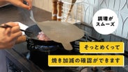 表面はノンスティック加工が施されています。包丁や金属製ヘラなどの鋭利な器具を直接当てると傷がつく可能性がありますので、調理中のツールは木製またはシリコン製を推奨します。