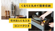 A. くるっと丸めて収納できます。薄くて軽いので、引き出しや隙間にすっきり収まります。